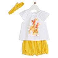 Ensemble t-shirt manches courtes girafe + short gaze de coton + bandeau bébé fille