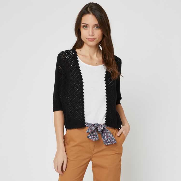 En savoir +Ce superbe boléro ajouré, avec manches 3/4, vient idéalement compléter vos looks pour cet été ! Léger, il convient aux chaleurs estivales et s'associe selon vos envies.