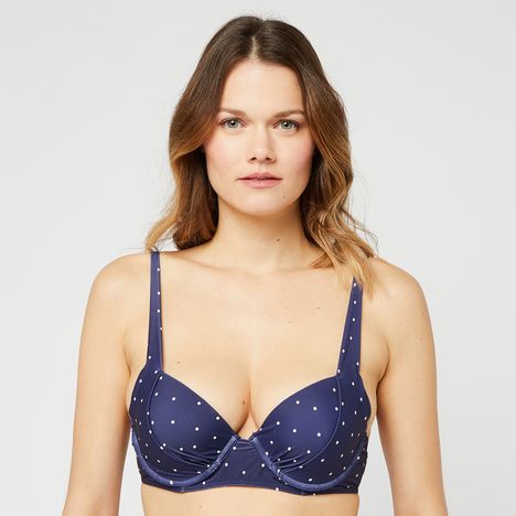 En savoir +On est sous le charme de ce haut de maillot de bain ampliforme qui bénéficie d’armatures pour un maintien optimal et de coques afin d’apporter au décolleté un galbe naturel. Joliment imprimé de pois, il offre de fines bretelles réglables et se ferme au dos par clip. On choisit de le mixer avec une culotte assortie ou unie, et on le glisse dans sa valise estivale sans hésiter !