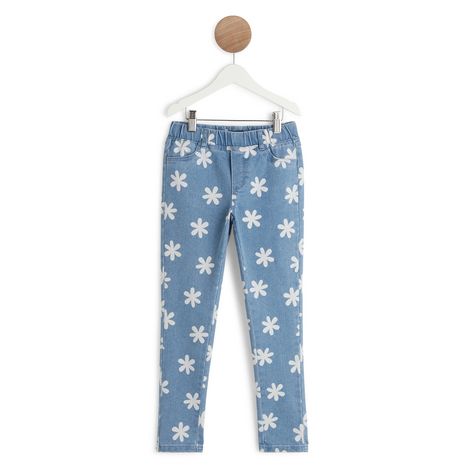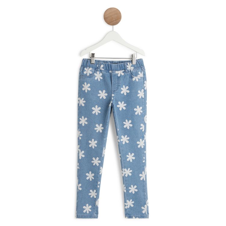 Jegging bleu fille à motifs fleur marguerite