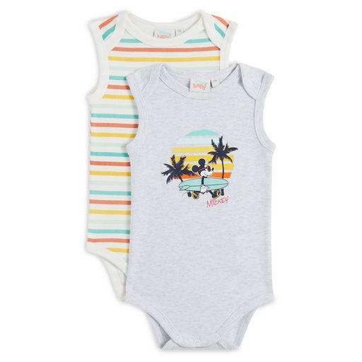 En savoir +Le body à manches courtes est indispensable au confort de bébé ! Ces 2 bodies trop mignons à l'effigie de Mickey Mouse, confectionnés en jersey tout doux 100% coton, possèdent une encolure américaine et une ouverture pressionnée à l’entrejambe pour un enfilage facile.