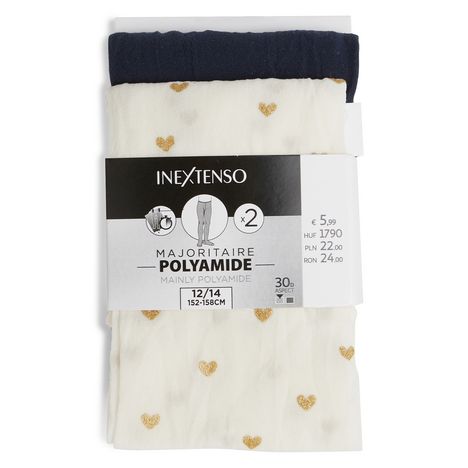 En savoir +Ce lot de collants en voile polyamide comporte un collant uni et 1 collant parsemé de cœurs brillants qui apportent la petite touche girly parfaite pour finaliser les tenues de fêtes !