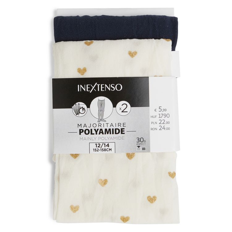 Ce lot de collants en voile polyamide comporte un collant uni et 1 collant parsemé de cœurs brillants qui apportent la petite touche girly parfaite pour finaliser les tenues de fêtes !
