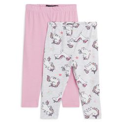 En savoir +Idéal à assortir avec les petites tuniques préférées, ce lot de 2 leggings est indispensable dans le dressing de bébé ! Il est composé d’un legging uni rose et d’un legging imprimé de jolies licornes sur fond gris chiné. Très agréables à porter, ces leggings sont conçus dans une matière légère et comportent une taille élastiquée douce qui ne compresse pas.