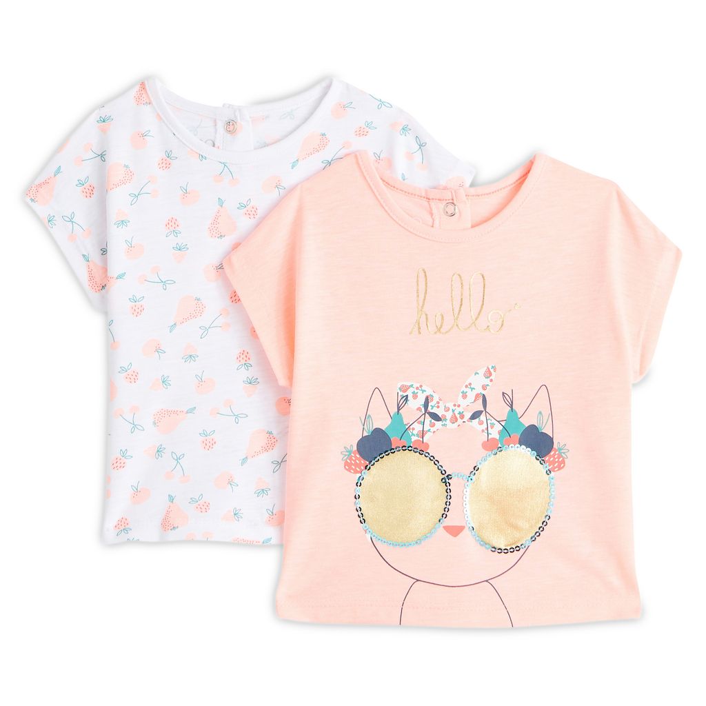 Lot de 2 t-shirts manches courtes chat bébé fille