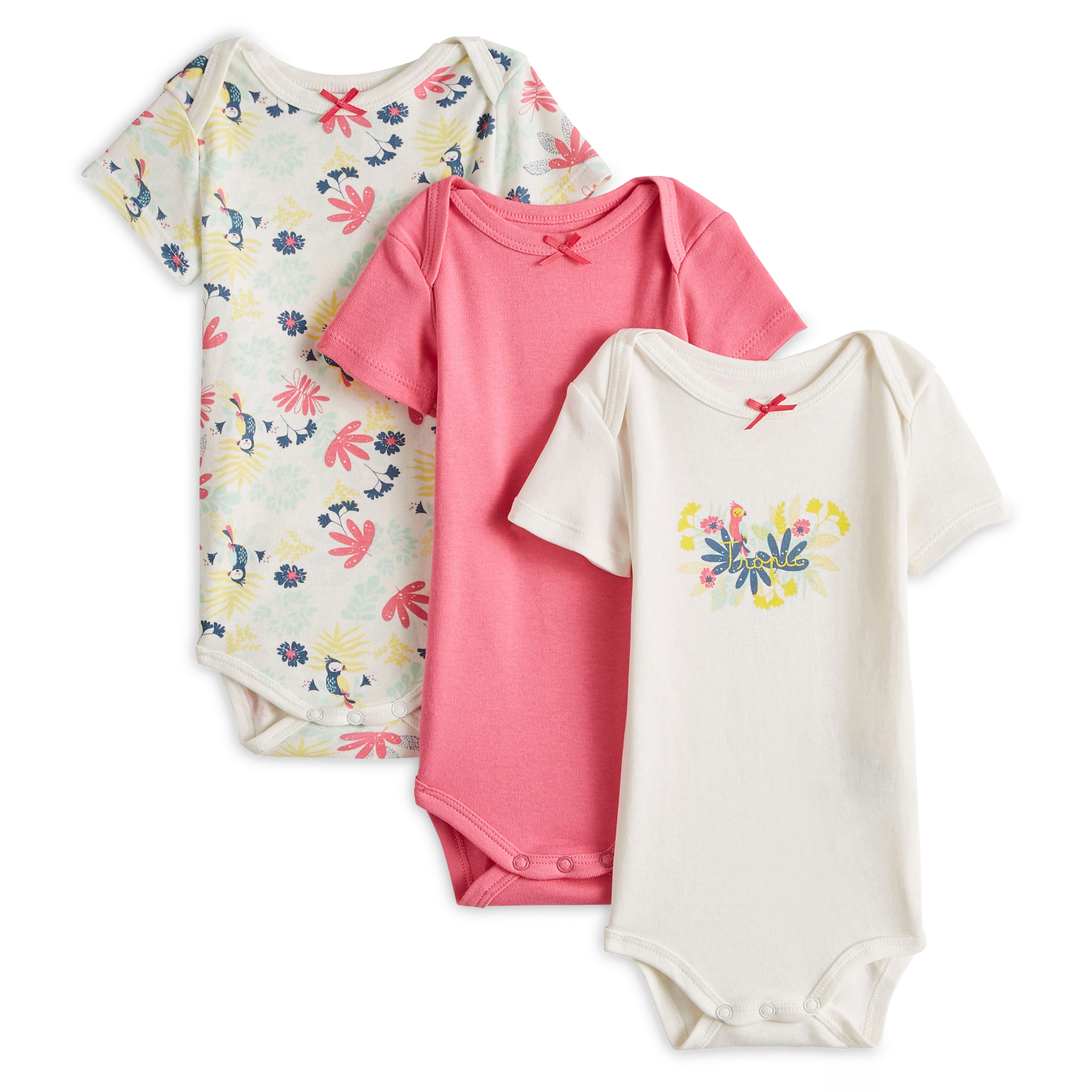 Lot de 3 bodies manches courtes tropical bébé fille