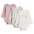 Le body à manches longues est indispensable au confort de bébé ! Ces 3 bodies, en coton tout doux, possèdent une encolure américaine et une ouverture pressionnée à l’entrejambe pour un enfilage facile. Le lot est composé d’un body rose uni, d’un body écru imprimé d'animaux trop mig