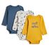 Le body à manches longues est indispensable au confort de bébé ! Ces 3 bodies, en coton tout doux, possèdent une encolure américaine et une ouverture pressionnée à l’entrejambe pour un enfilage facile. Le lot est composé d’un body bleu foncé uni, d’un body écru imprimé d'animaux tr