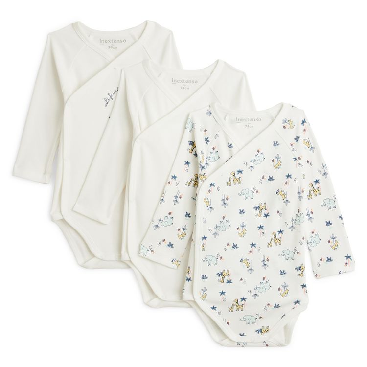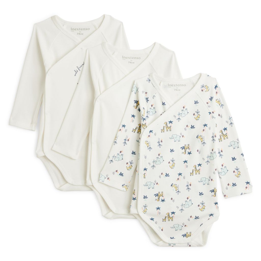 Facile à enfiler grâce à sa fermeture croisée pressionnée, ce lot de 3 body à manches longues est la petite pièce indispensable dans le dressing des tout-petits. Tout mignon en version unie, avec son motif placé ou son print all over avec les animaux de la savane, il se porte au quotidien pour appor