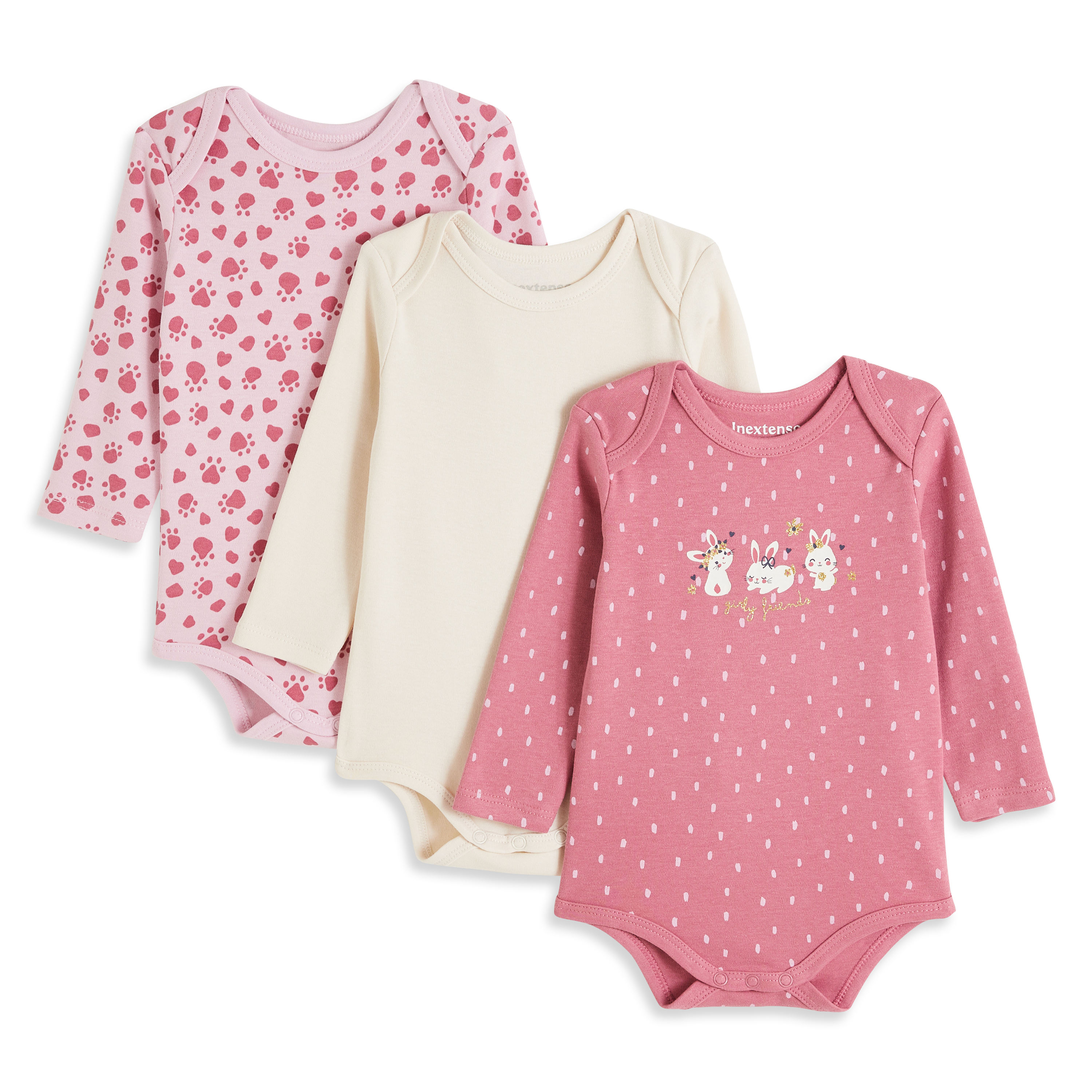 En savoir +Le body à manches longues est indispensable au confort de bébé ! Ces 3 bodies, en coton tout doux, possèdent une encolure américaine et une ouverture pressionnée à l’entrejambe pour un enfilage facile. Le lot est composé d’un body rose clair imprimé animal, d’un body écru uni, et d’un body rose framboise imprimé de trois adorables lapins sur le devant !