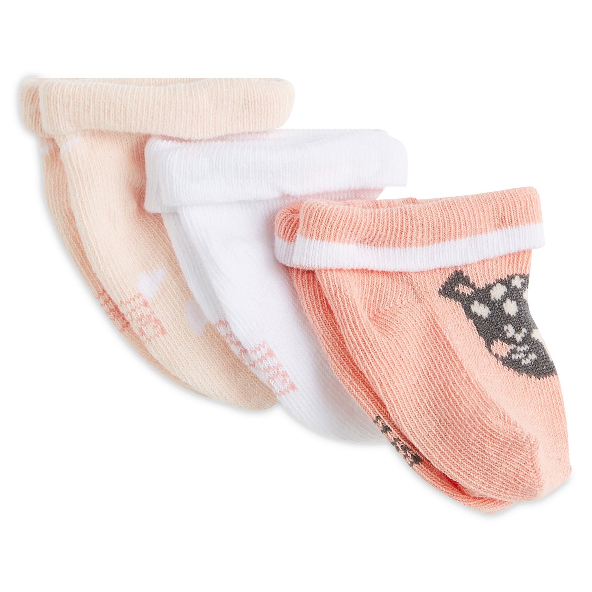 En savoir +Douces et tout confort, ces 3 paires de chaussettes réchaufferont joliment les petits pieds de bébé dès la naissance. Conçues en polycoton stretch, elles s'enfilent facilement et possèdent un revers bord-côte. On craque pour le tendre motif placé sur la paire rose.