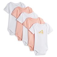 De la douceur pour chaque jour avec ces bodies parfaits pour le confort de notre petit coeur au quotidien ! L'encolure américaine permet un enfilage facile, et la fermeture pressionnée à l'entrejambe permet de changer bébé sans le découvrir complétement. Ce lot de 5 bodies à manches courtes est comp