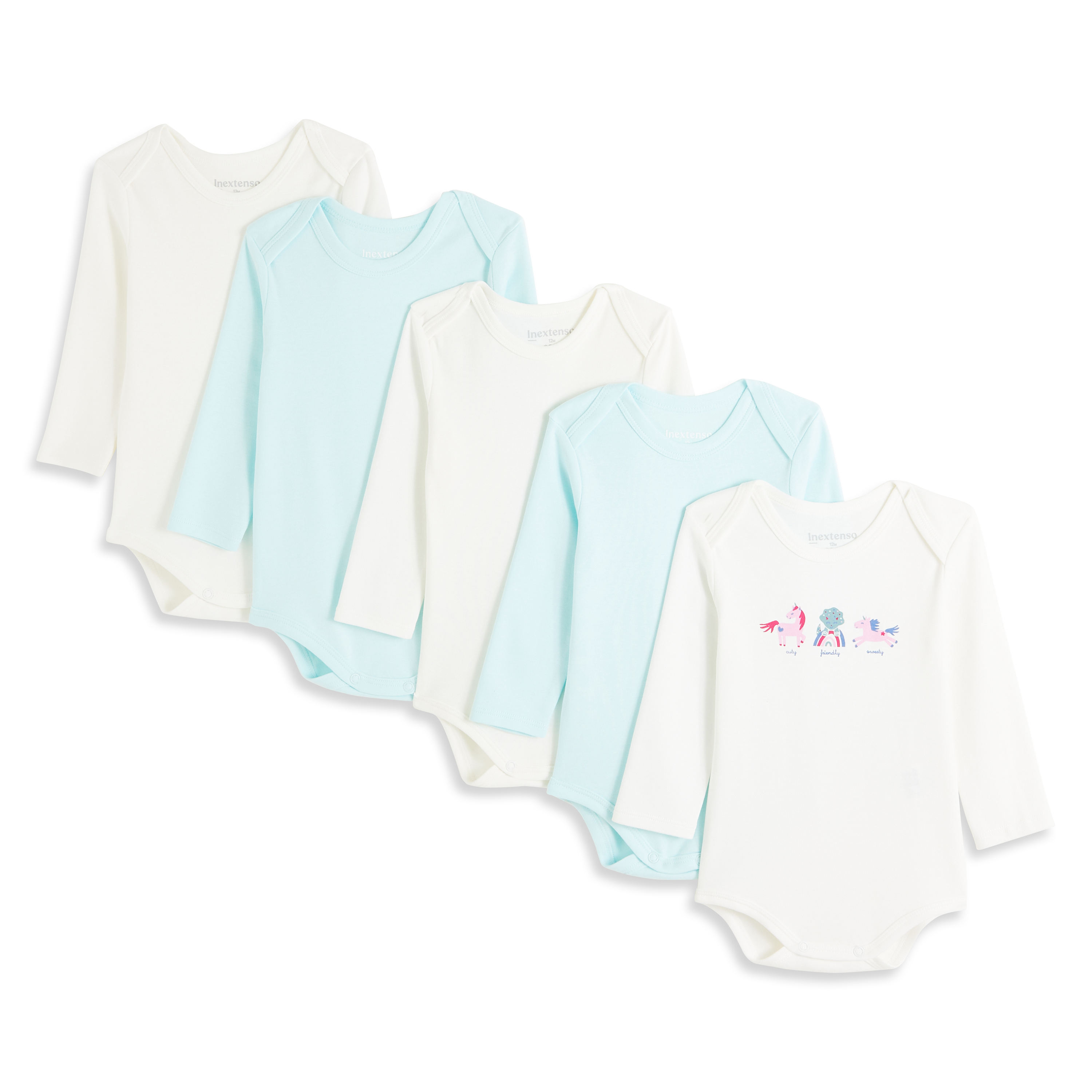 En savoir +Le body à manches longues est indispensable au confort de bébé ! Ces 5 bodies, confectionnés en jersey de coton tout doux, possèdent une encolure américaine et une ouverture pressionnée à l’entrejambe pour un enfilage facile. Ce lot plein de tendresse est composé de 4 bodies unis et d'un body avec un tendre motif placé devant.