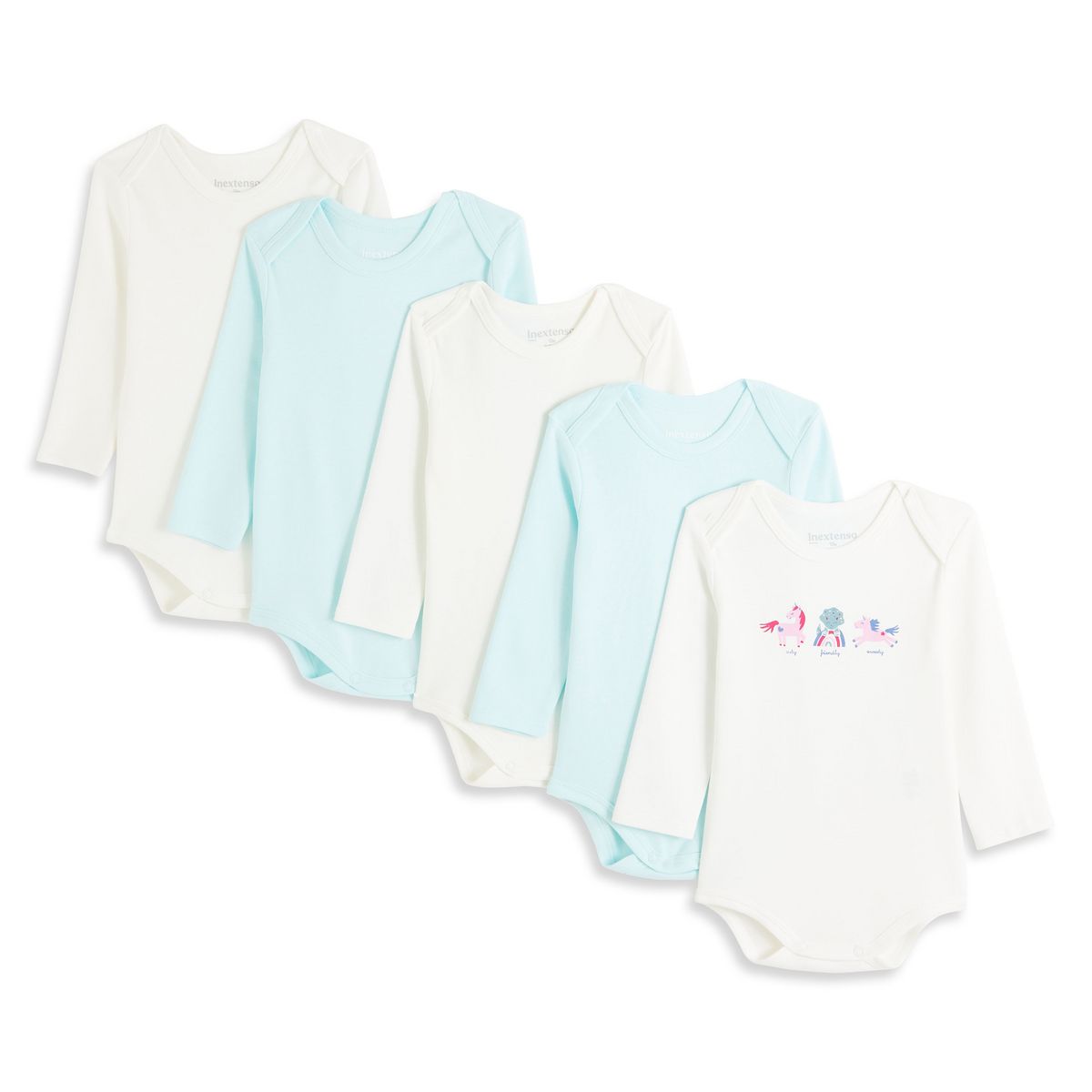 Le body à manches longues est indispensable au confort de bébé ! Ces 5 bodies, confectionnés en jersey de coton tout doux, possèdent une encolure américaine et une ouverture pressionnée à l’entrejambe pour un enfilage facile. Ce lot plein de tendresse est composé de 4 bodies unis et d'un body