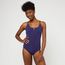 Sans armature, ce maillot de bain 1 pièce dévoile de fines bretelles ajustables croisées au dos, des pinces poitrine, une matière extensible, une encolure ronde devant avec découpe et un dos arrondi. On adore sa matière légèrement en relief qui allonge la silhouette.