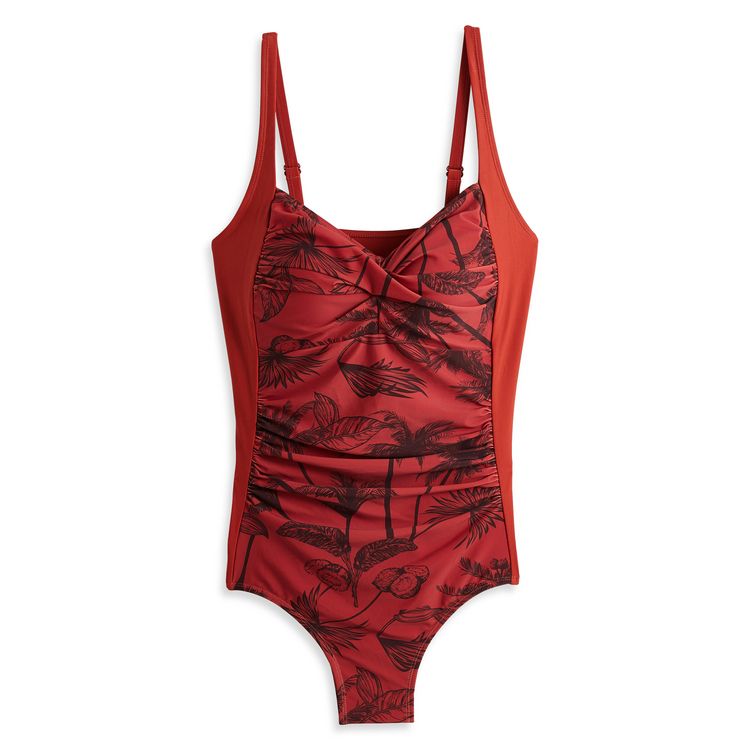 Confortable à porter avec sa matière extensible, ce maillot de bain 1 pièce se pare de détails féminins avec ses bretelles ajustables, son motif imprimé devant, son décolleté croisé et son drapé fantaisie devant pour mettre la silhouette en valeur. On choisit de le porter à la plage comme à la pisci