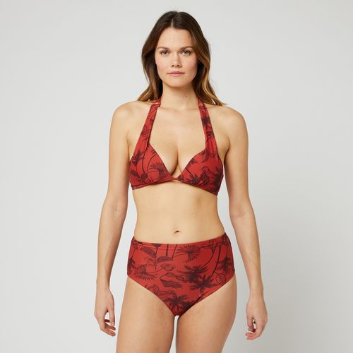 En savoir +Un bel imprimé s’affiche sur ce maillot de bain 2 pièces aux couleurs tendance. Le soutien-gorge foulard offre un profond décolleté, il se noue autour du cou et mise sur des liens à nouer au dos. Sa culotte assortie bénéficie d’une taille et de tours de cuisses élastiqués, et d’un fond doublé. Sa taille haute assure un maintien parfait au porté.