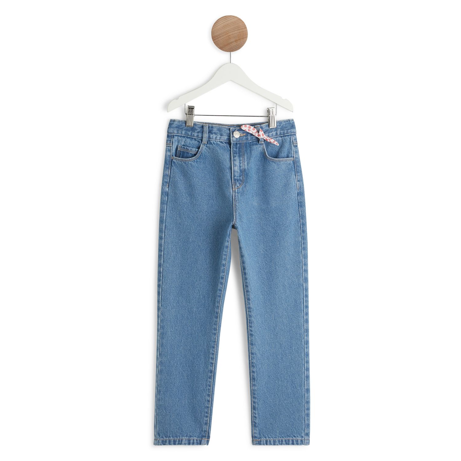 Coup de cœur pour ce pantalon en denim à la coupe large que les filles vont adorer porter au quotidien pour un look ultra stylé ! Conçu en 100% coton, ce jean affiche un petit ruban fantaisie noué autour d'un passant à la taille pour la touche mode et fantaisie ! 5 vraies poches viennent compl
