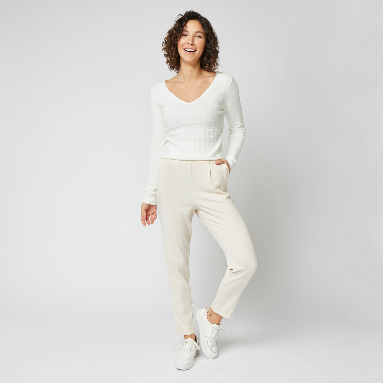 Pantalon molleton élastiqué blanc femme