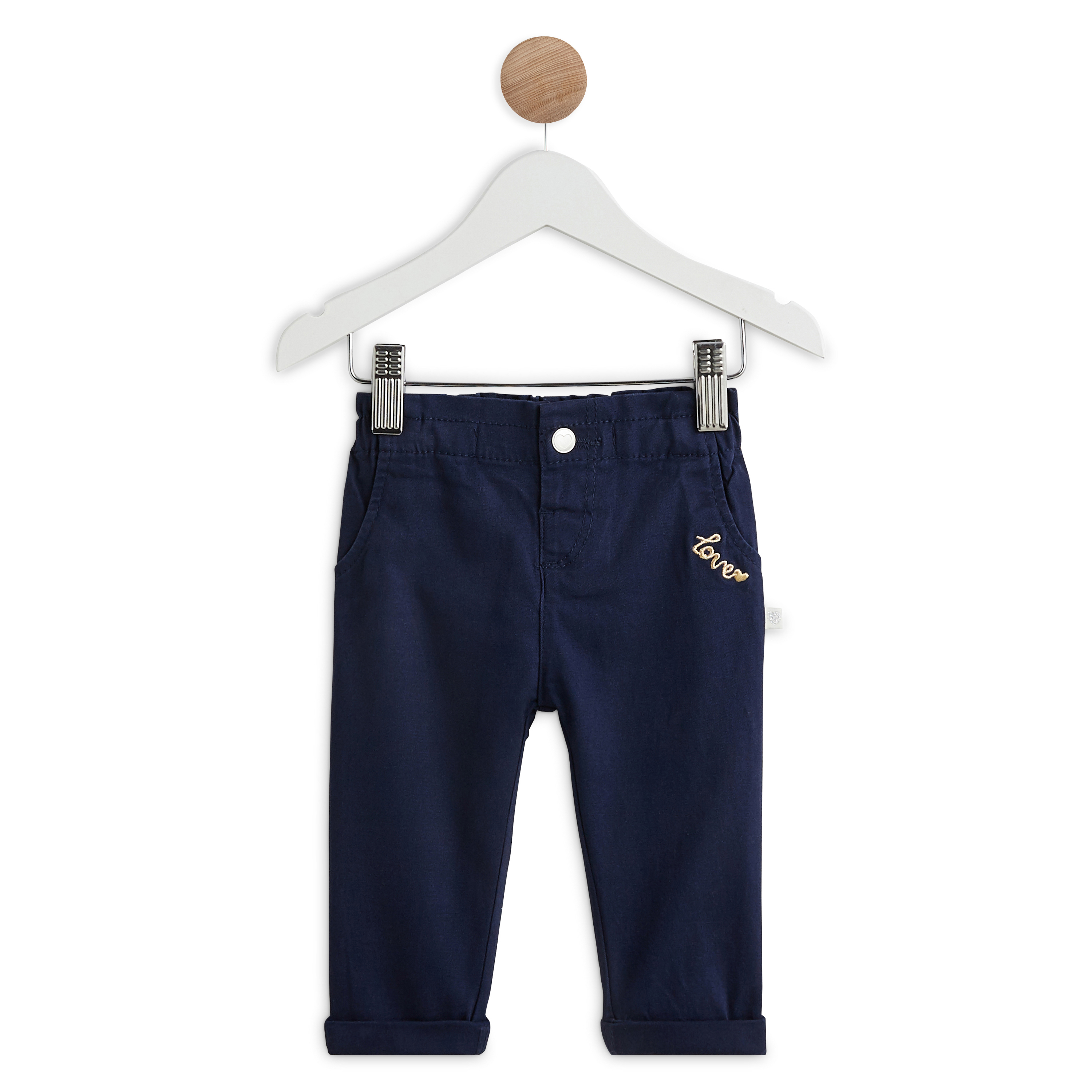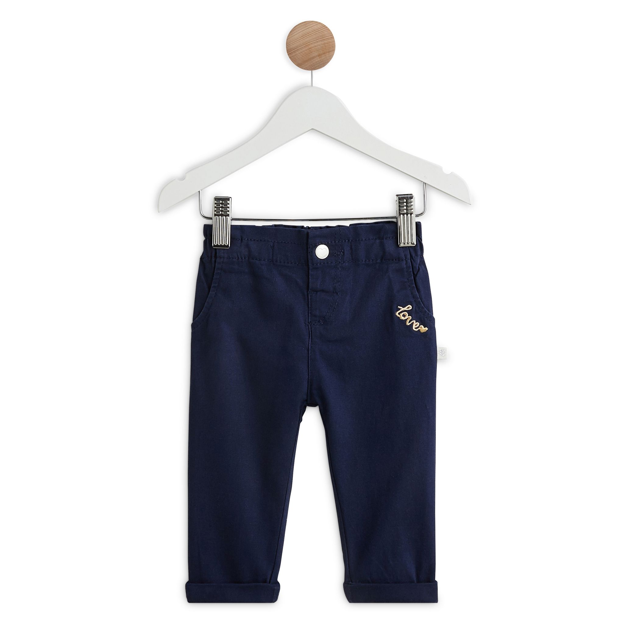 On craque pour ce pantalon en twill hyper mignon pour votre petite princesse, pratique et confortable au quotidien ! Facile à enfiler grâce à sa taille élastiquée, il est léger et légèrement stretch. Facile à assortir, on aime le joli message brodé au niveau de la poche devant et les revers en bas de jambe.