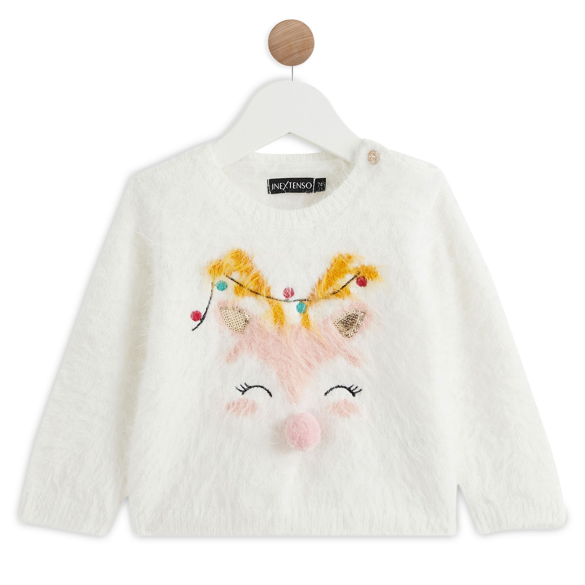 On craque pour ce pull tout chaud de Noël pour le plus grand confort de bébé ! Son motif renne fantaisie est trop mignon avec son pompon en relief et ces détails poilus tout doux ! Le pull possède une ouverture boutonnée sur l’épaule pour un enfilage facile.