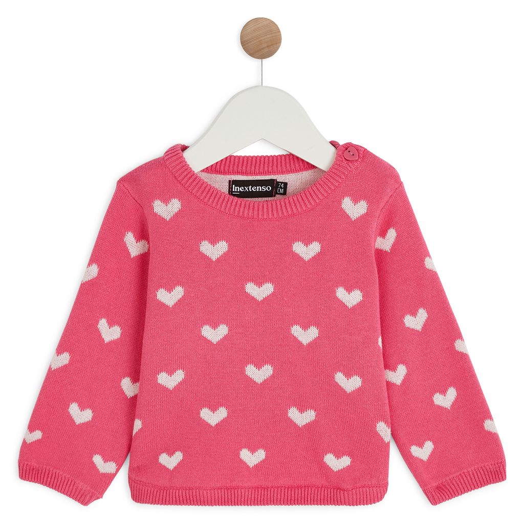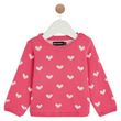 Allié idéal pour réchauffer les tenues de bébé, ce pull jacquard affiche une maille toute douce animée de jolis cœurs tendance. Facile à coordonner, il mise sur une encolure ronde fermée par un bouton fantaisie et des finitions bord-côtes. Ce basique est la pièce idéale qui mixe douceur, chale