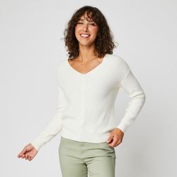 Pull col rond blanc femme