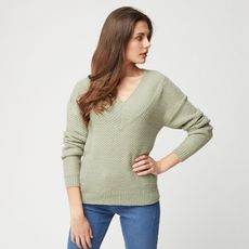 Pull col v vert clair femme