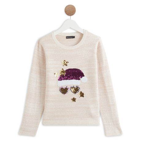 En savoir +Un pull de Noël pour les petites filles animé de jolis motifs en sequins pailletés placés devant : incontournable pour cette saison ! Il est réalisé en tricot doux et chaud. Avec son col rond, on note les finitions bords-côtes.