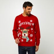 Pull de noël rouge grenat renne homme