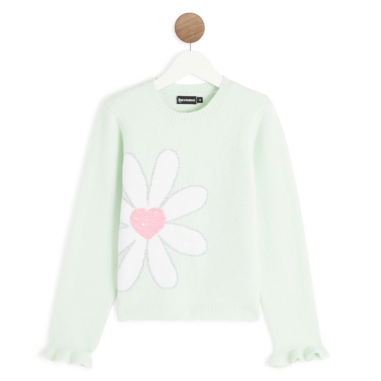 Léger, ce pull en maille mousseuse apporte une jolie touche de fraîcheur à la tenue de votre fille pour cet été ! Il arbore une jolie fleur à sequins devant.