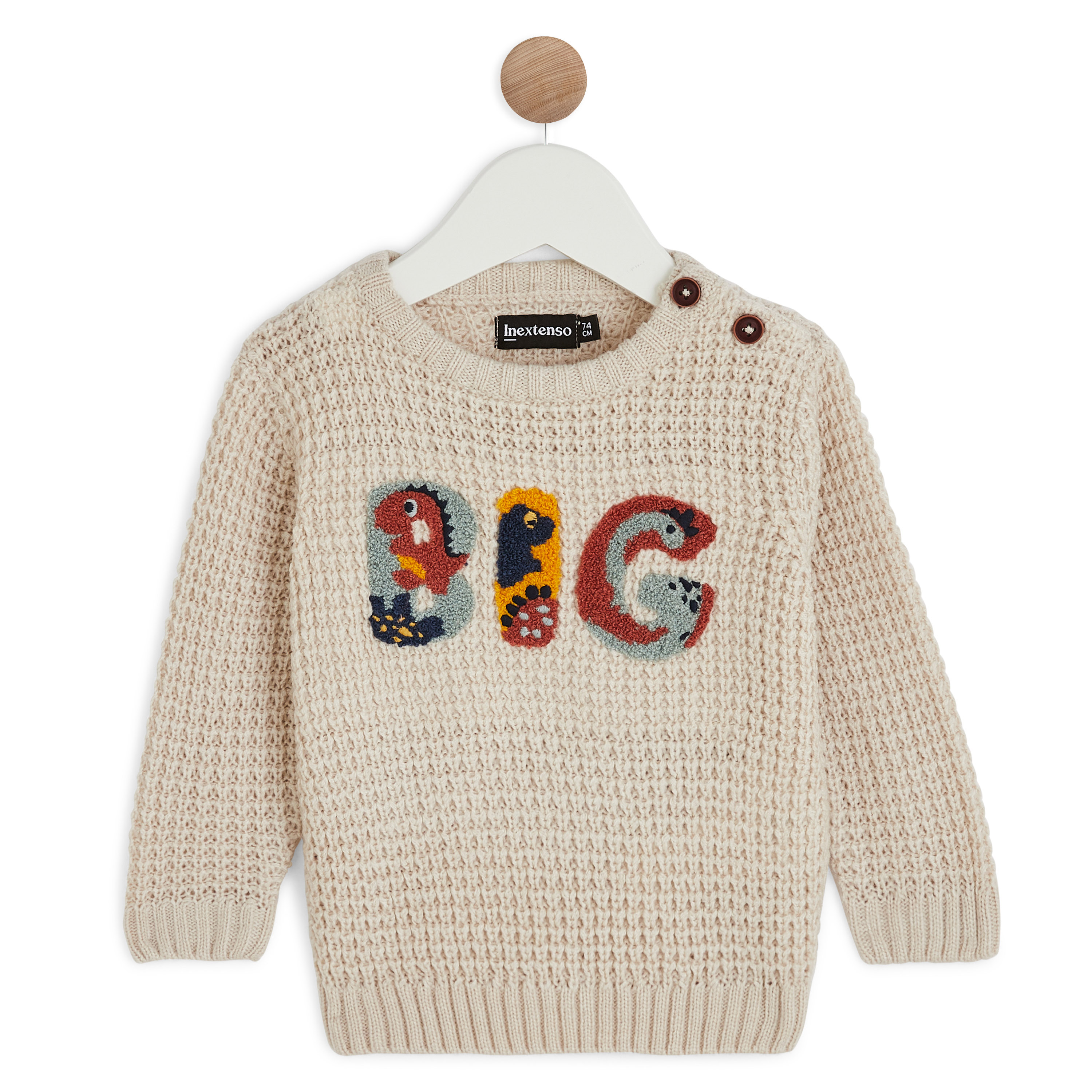 En savoir +Parfait pour une tenue confortable, ce pull à manches longues s’associe facilement à un jean ou un pantalon en molleton pour apporter douceur et chaleur. Caractérisé par une maille fantaisie, une encolure ronde fermée par boutons et des finitions bord-côtes, il permet à bébé de se sentir à l’aise. Avec son motif placé dinosaures en maille bouclette, on l'adopte sans hésiter pour le mixer avec toutes les tenues.