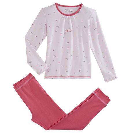 Ce pyjama est 100% girly : les filles l'adorent ! Réalisé en coton. Toucher doux. Agréable à porter. Haut : imprimé en all-over, col rond animé de fronces, manches longues, surpiqûres fantaisie. Pantalon uni, taille et bas de jambe élastiqués. Ce pyjama fille est lavable en machine à 40°.