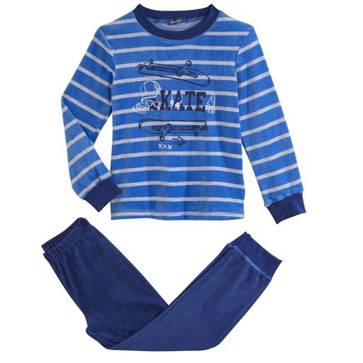 Les garçons optent sans hésiter pour ce pyjama en velours, doux et tendance ! On aime : l'animation 100% skate sur le devant. Pyjama velours garçon. Agréable à porter. Toucher doux. Haut : col rond, manches longues, imprimé sur le devant. Bas : pantalon de pyjama uni, taille élastiquée confort