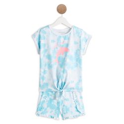 Avec son motif hyper cool tie and dye et dauphin les petites filles se la couleront douce à la maison avec ce pyjama original ! L’ensemble se compose d’un t-shirt à manches courtes agrémenté d'un noeud sur le bas et d’un short élastiqué à la taille. Conçu en jersey 100% coton, ce p