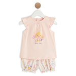 Trop mignon, cet ensemble pyjacourt est composé d'un t-shirt imprimé d’un joli soleil pailleté accompagné de flamants rose, possède des volants au niveau de l'emmanchure et une fermeture pressionnée au dos pour faciliter l'habillage ! Le short est imprimé en continu et possède une taille et des cuisses élastiquées. L’ensemble est conçu en jersey de coton tout doux.
