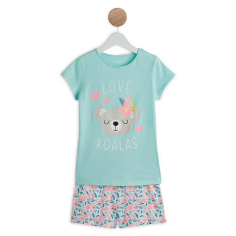 En savoir +Cet ensemble de pyjama est carrément trop mignon avec son joli imprimé koala qui fera craquer les filles ! Il se compose d’un t-shirt à col rond et d'un short en imprimé continu à la taille élastiquée pour plus de confort.