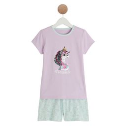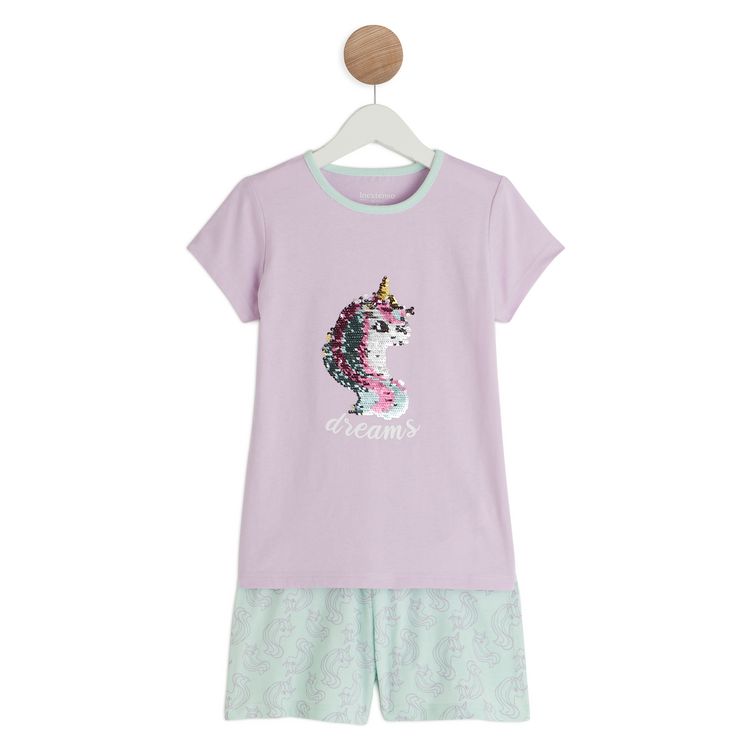 En savoir +Un pyjacourt esprit licorne un brin sauvage, qui tombe à pique pour les nuits douces de la belle saison ! Cet ensemble est composé d'un t-shirt à manches courtes avec grand motif à sequins, et d'un bermuda assorti à taille élastiquée.