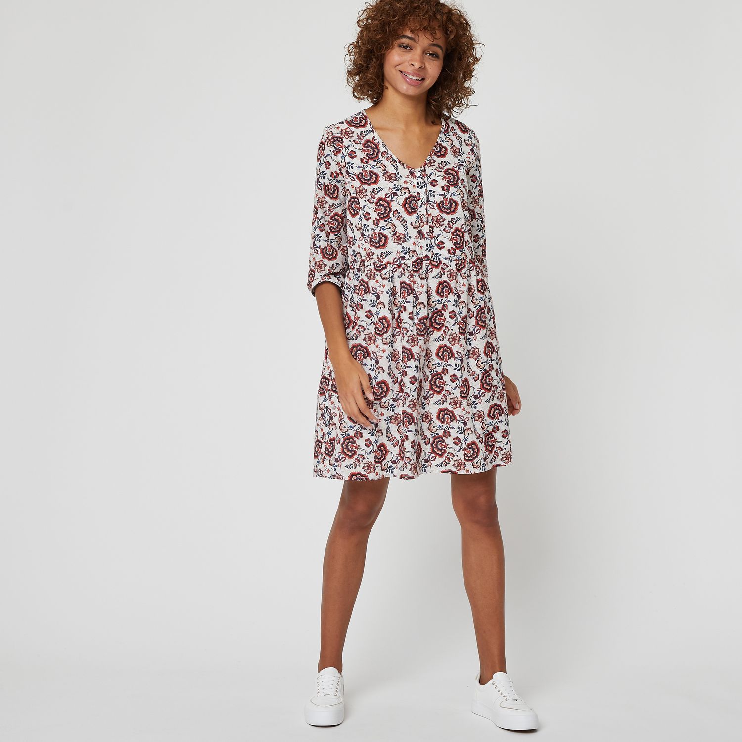Robe courte écru imprimé fleuri femme