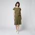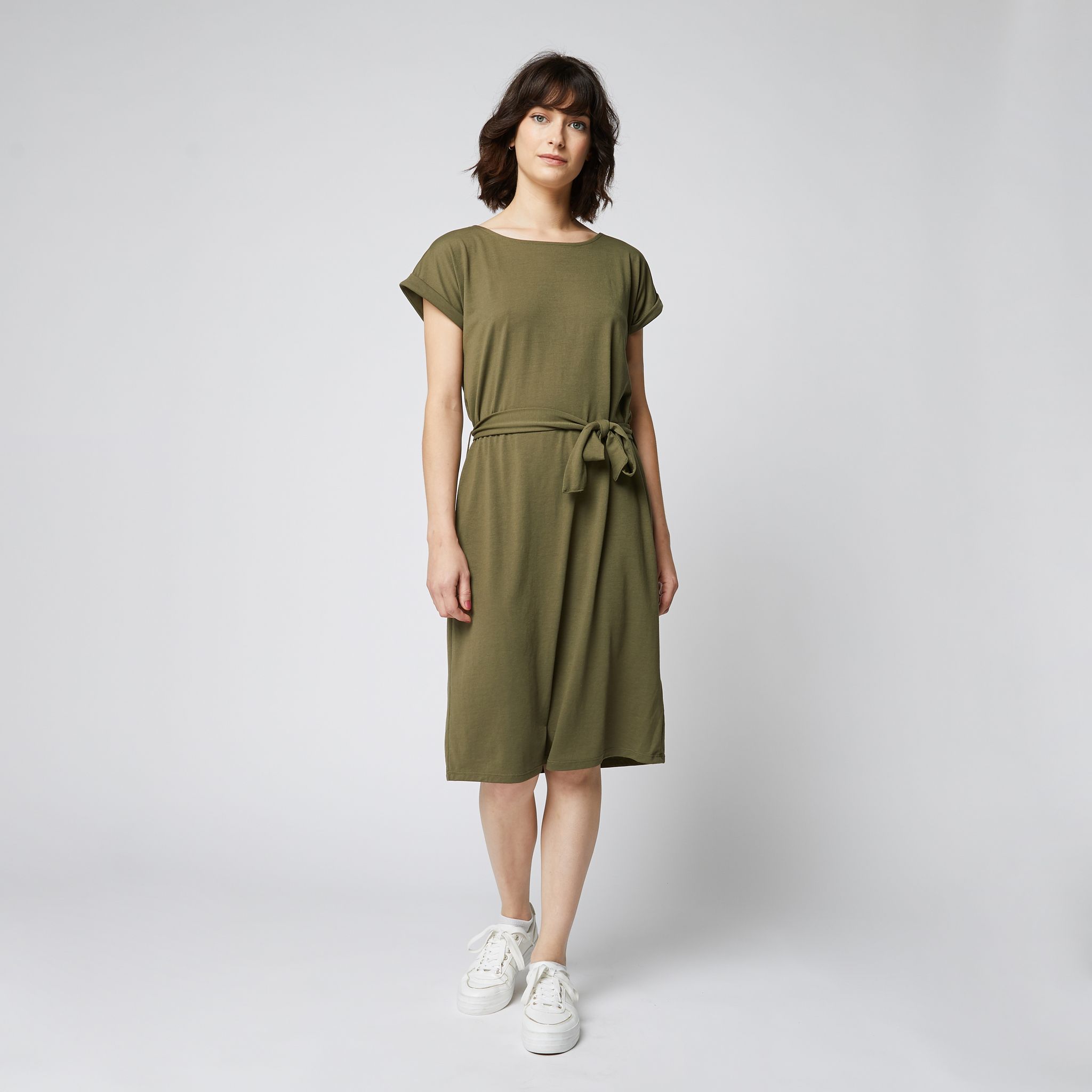 Robe manches courtes en maille avec ceinture vert kaki femme