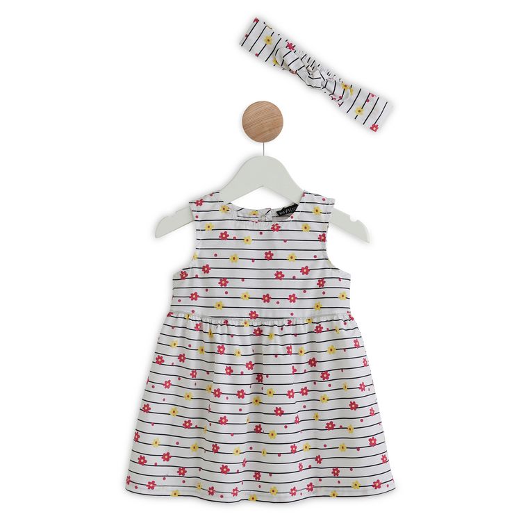 Robe popeline rayée à fleurs avec bandeau bébé fille