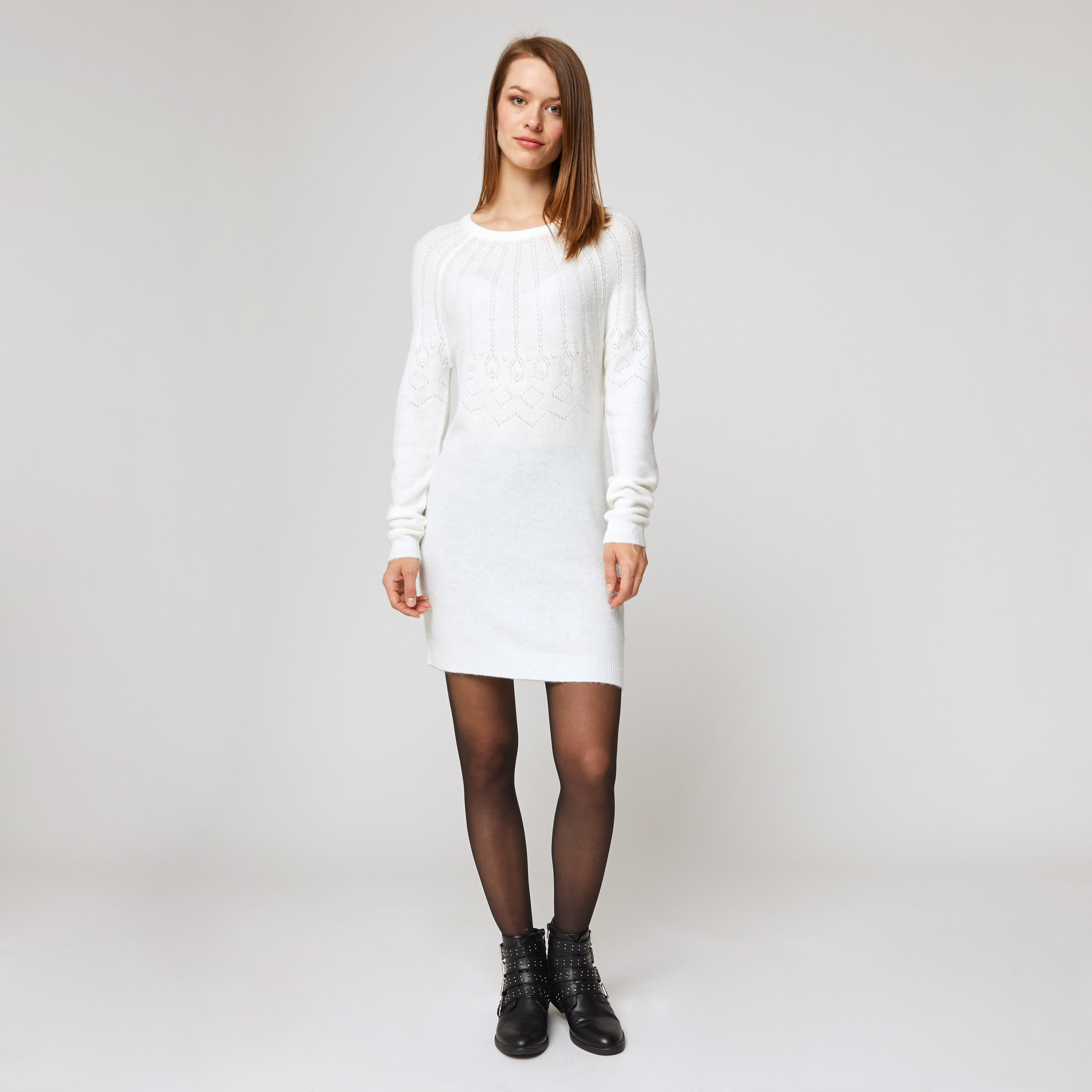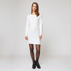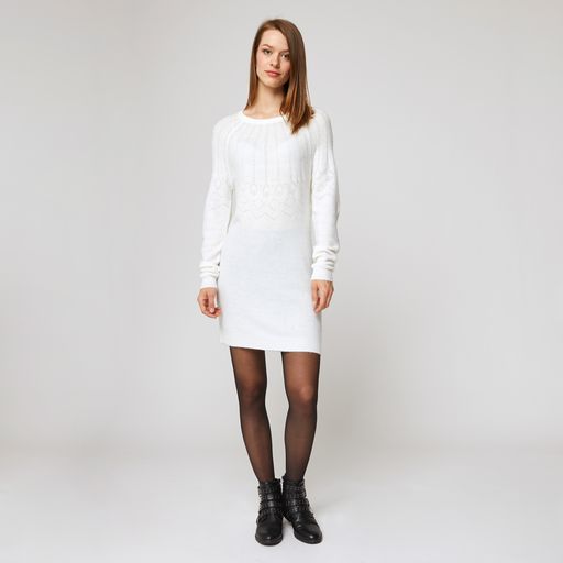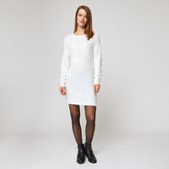 Robe pull col rond écru femme