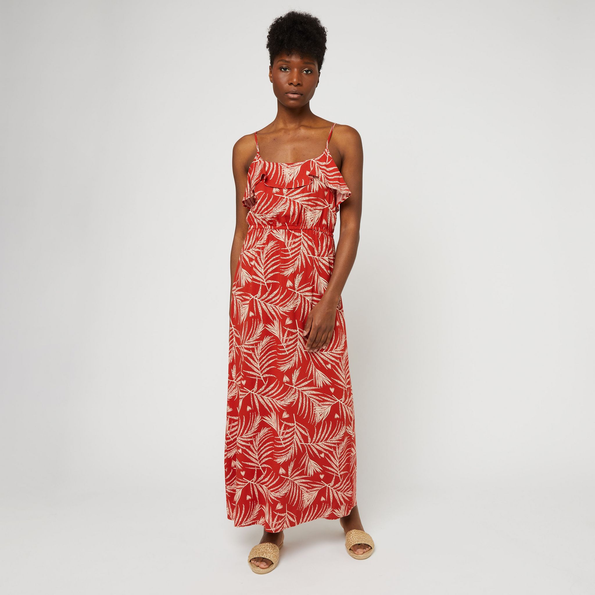 En savoir +L’imprimé aux couleurs pep’s s’invite dans notre vestiaire estival et joue la carte de la féminité avec cette robe bien longue qui impose son style. Confectionnée dans une viscose de qualité, elle affiche une taille élastiquée, de fines bretelles et un décolleté arrondi souligné d’un volant fantaisie pour plus de féminité. Agréable à porter par les chaudes journées d’été, cette petite pièce est une vraie pépite !