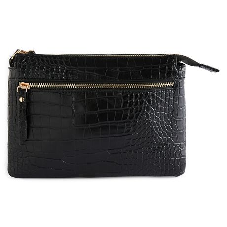 En savoir +Avec sa forme rectangulaire, cette pochette zippée permet de ranger l’essentiel dont on a besoin et s’accorde facilement avec une tenue de fête ou de cérémonie. Véritable accessoire de mode, elle se ferme par un zip sur le dessus et possède une poche latérale ainsi qu’une bandoulière. On aime son revêtement à l’aspect crocodile, ses finitions dorées et ses tirettes assorties pour apporter la touche finale à votre look !