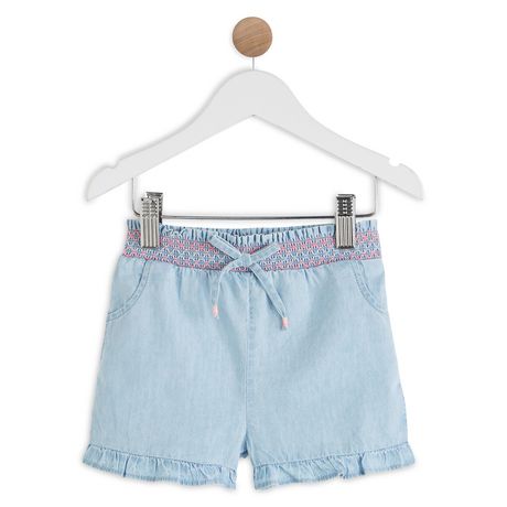 En savoir +Ce joli short annonce la belle saison pour notre petite princesse ! On aime la forme droite, la fintions volantée et les broderies au niveau de la taille. La taille est élastiquée pour plus de confort et un habillage facile, et possède un nœud trop mignon placé devant !