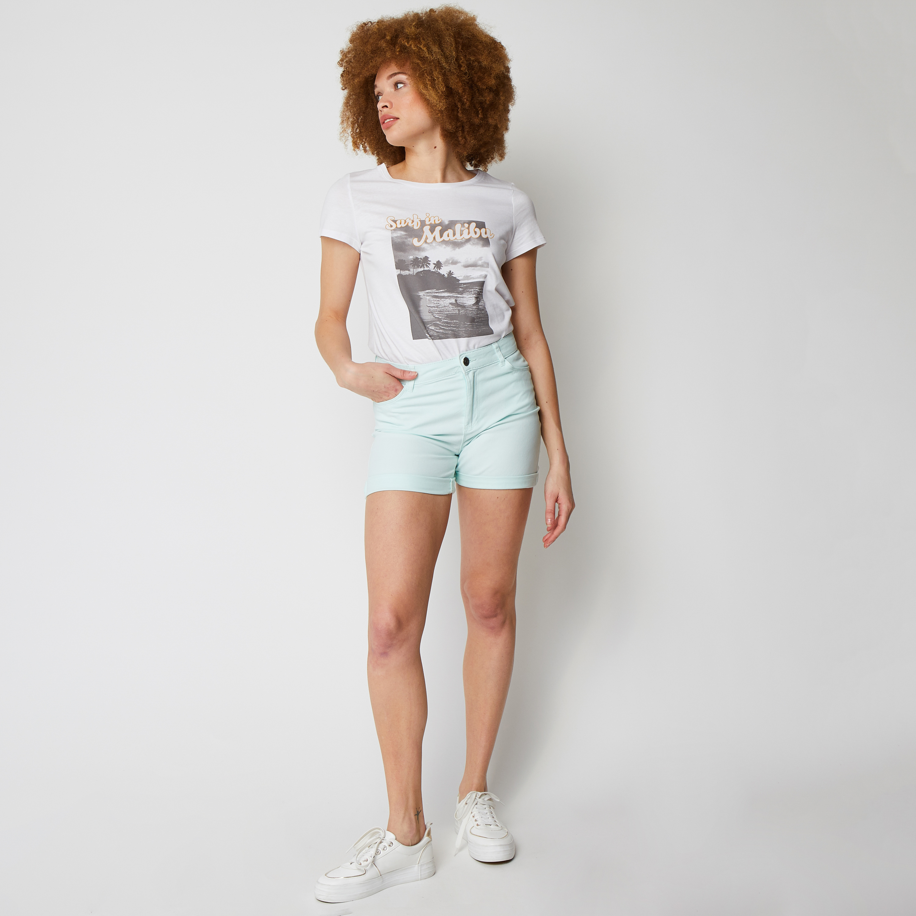 Short twill turquoise femme