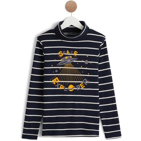 Les garçons mettent le cap sur une autre galaxie avec ce t-shirt rayé manches longues animé d'un motif fantaisie devant. Il est doté d’un col roulé pour parer du froid. Ce t-shirt garçon ne présente pas d’étiquette dans le cou mais un tampon pour plus de confort.