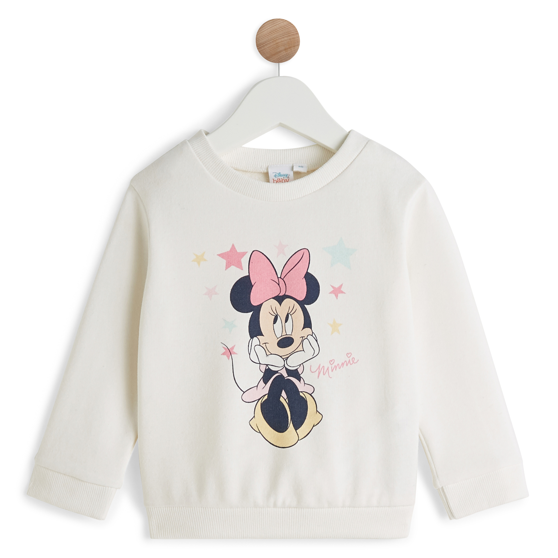 Notre petite coquette est à croquer dans ce sweat en molleton imprimé à l'effigie de la jolie Minnie Mouse ! Douillet et confortable, ce sweat comporte des poignets, bas et encolure en bords-côtes extensibles pour un habillage facile.