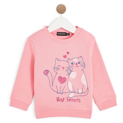 En savoir +On tombe sous le charme de ce sweat qui s’égaie d’un joli motif placé pour animer les tenues des plus petits en toute saison. Ce modèle col rond à manches longues, avec finitions bord-côtes, affiche un couple de chats sur le devant rehaussé d’une touche de paillettes pour un effet girly. Avec sa matière ultra chaude en molleton, il est parfait pour apporter douceur et confort.