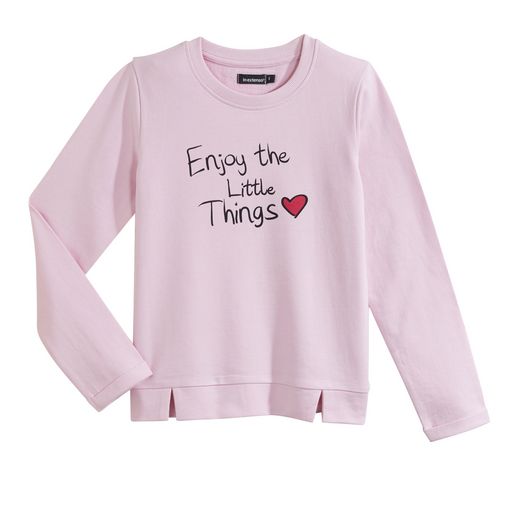 Le sweat fille : vêtement indispensable pour un look cool en toute occasion ! Réalisé en molleton léger et confortable. On aime : sa couleur rose et son imprimé un rien girly. Col rond, manches longues avec revers, ouvertures féminines à la base sur le devant. Finitions bords-côtes. Ce sweat fille est facile d'entretien.